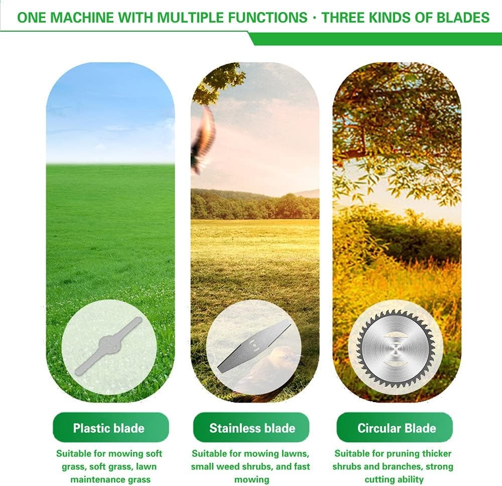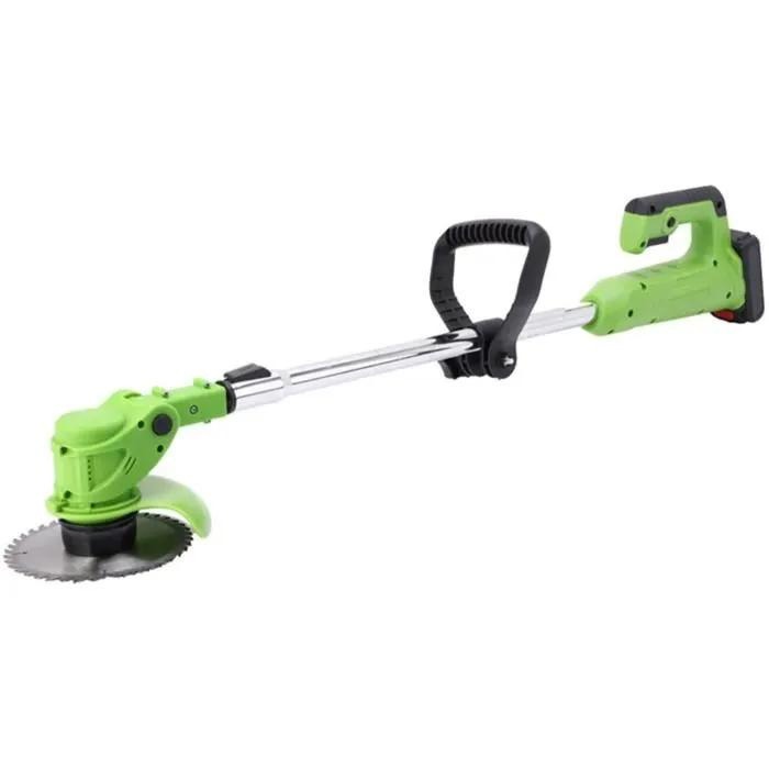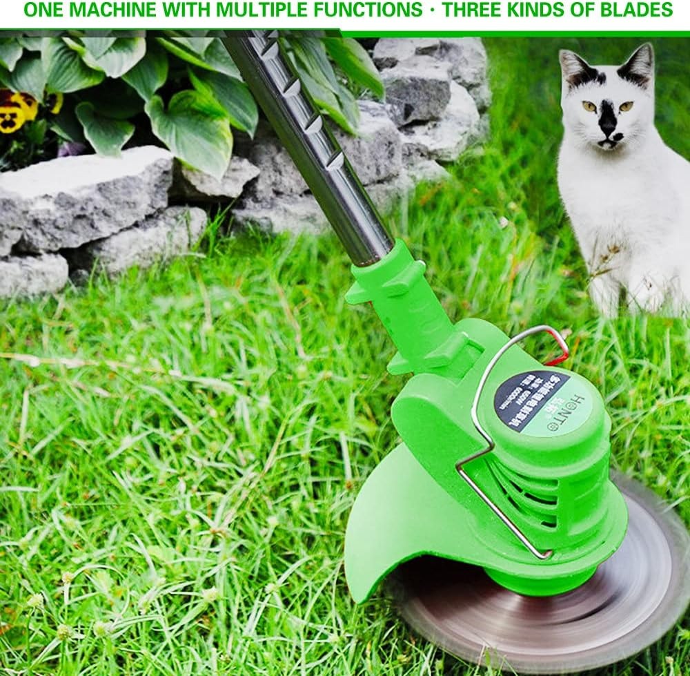 Аккумуляторный садовый триммер газонокосилка с двумя аккумуляторами 36V, 3 вида насадок, телескопическая ручка, зеленый