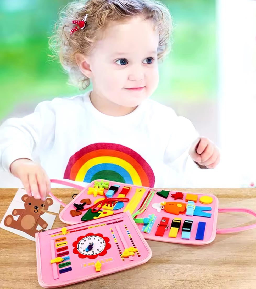 Бизиборд, развивающая сенсомоторная доска для обучения и развития малышей, розовая