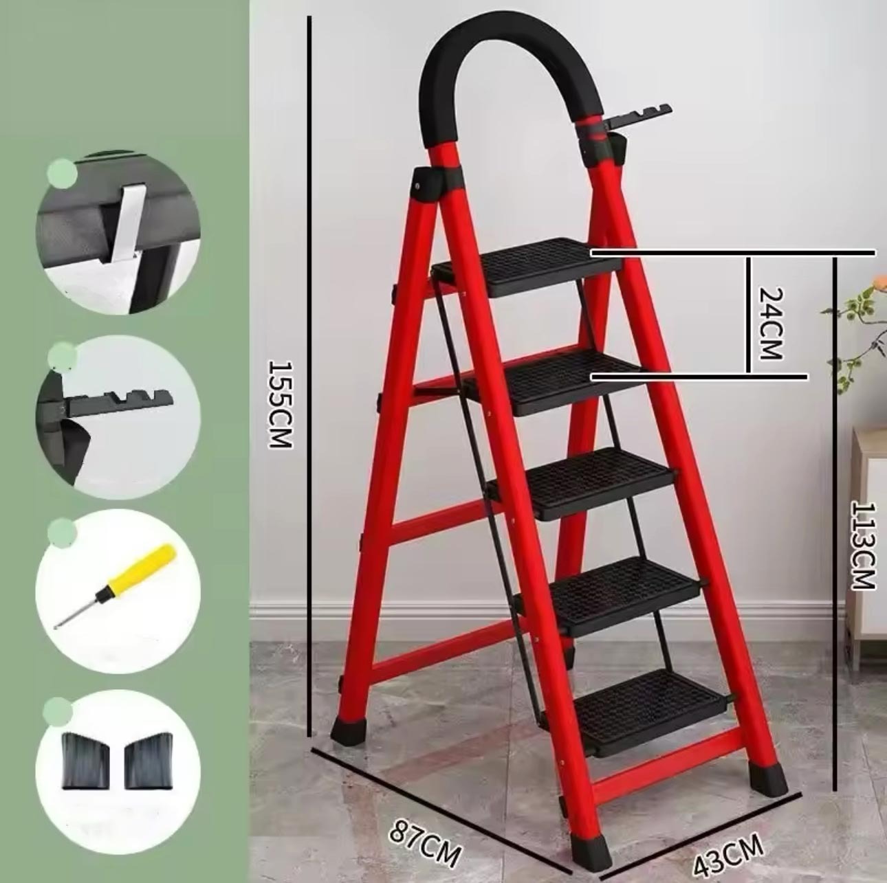 5 широкие ступени дополнительно обеспечивают удобство и устойчивость во время работы. Наша стальная стремянка с 5 широкими ступенями и пластиковыми ковриками – это идеальный выбор для домашнего использования, ремонтных работ, садоводства и других задач, требующих работу на высоте.