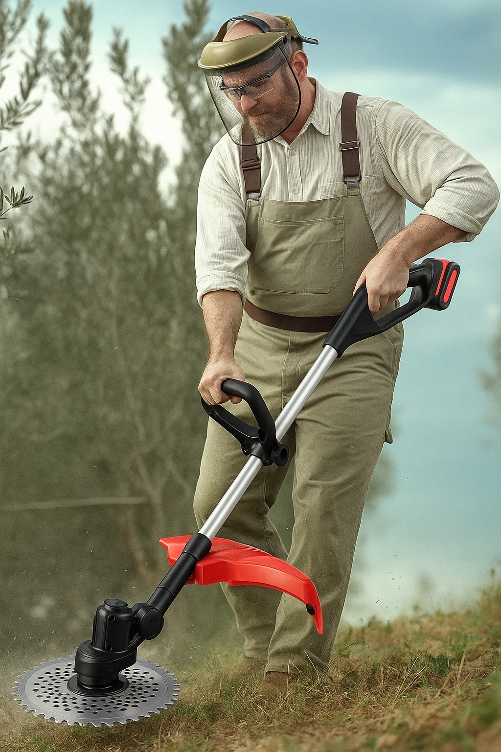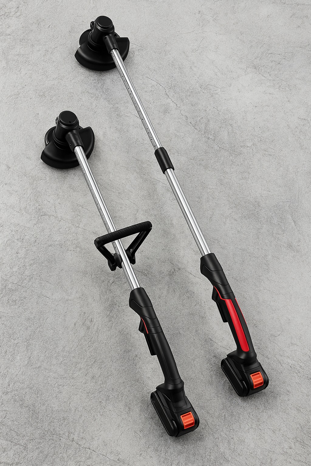 Аккумуляторный садовый триммер 36V с 2 аккумуляторами — газонокосилка с 3 насадками, телескопической ручкой и регулировкой высоты