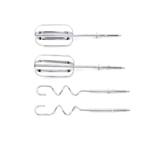 Четыре насадки — венчики для взбивания и крюки для теста, легко меняются кнопкой извлечения