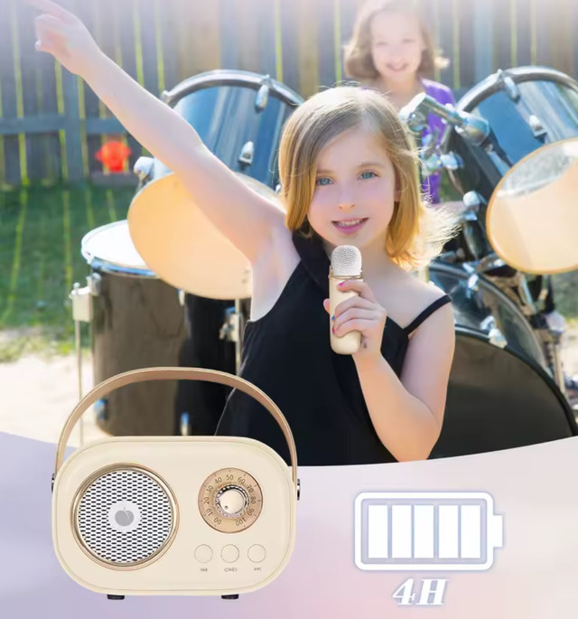 Детская Bluetooth караоке‑колонка с одним микрофоном — это удобный и безопасный способ подарить ребёнку музыкальное творчество. Работа от аккумулятора, простое управление, световые эффекты и поддержка Bluetooth делают её универсальным устройством для домашнего использования и праздников. Компактный формат и доступная цена делают её отличным выбором для первых музыкальных шагов
