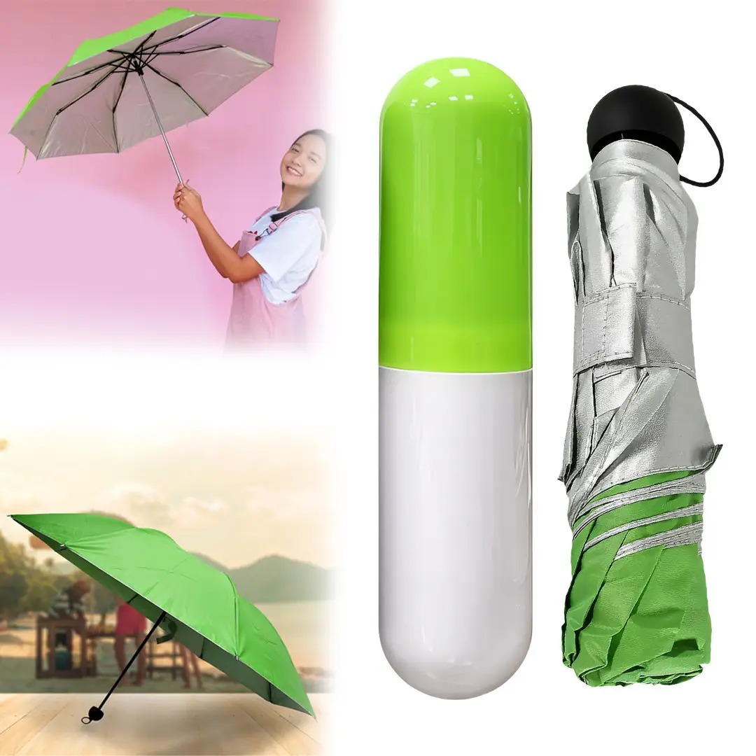 Мини-зонт Капсула с куполом 97 см и чехлом, зеленый, дорожный формат