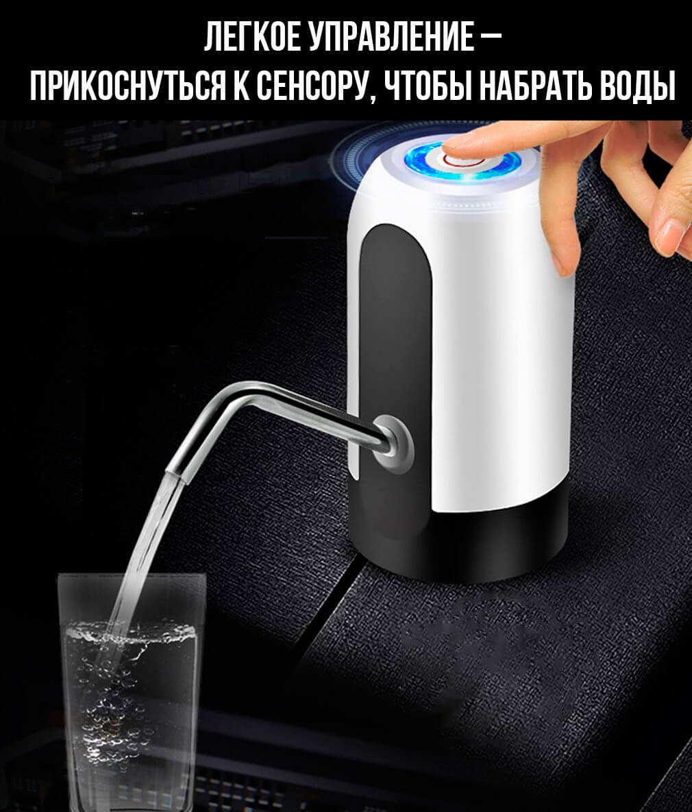- Электронная помпа помогает вам четко и без проливаний набрать необходимое количество питьевой воды из бутыля.