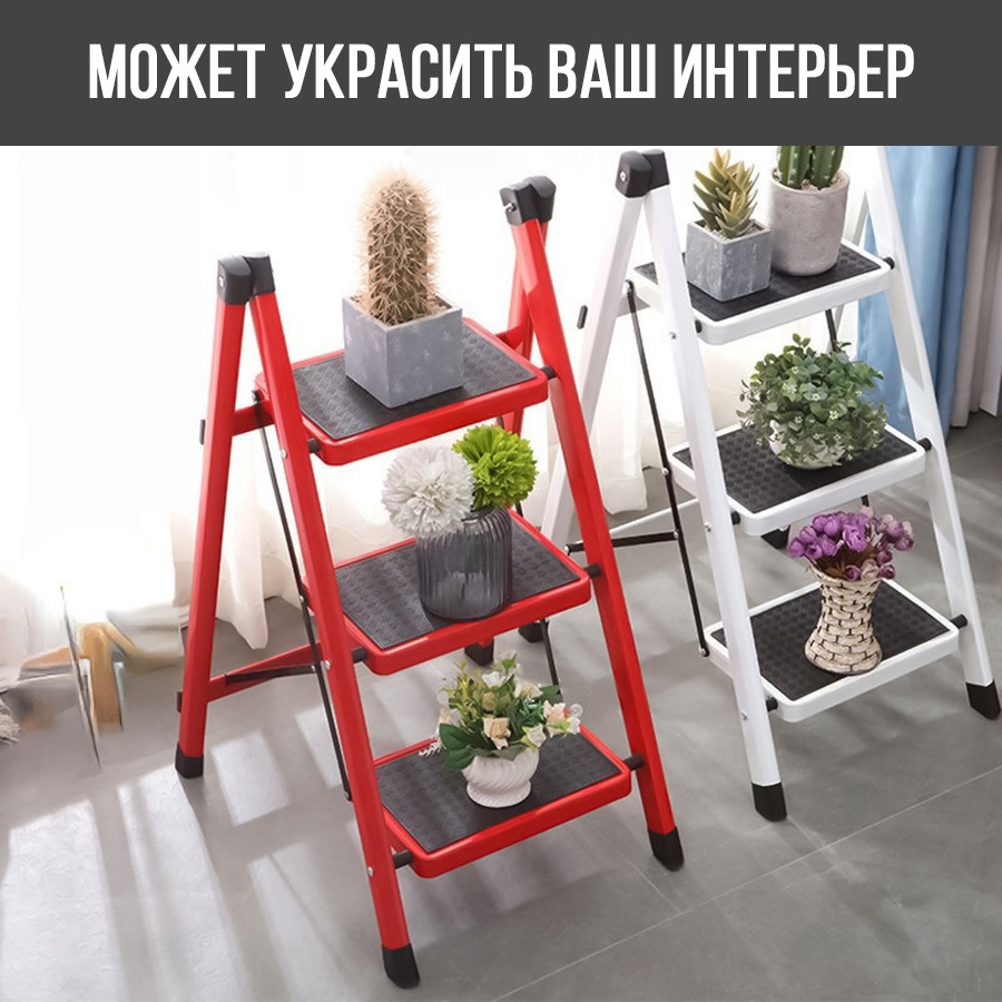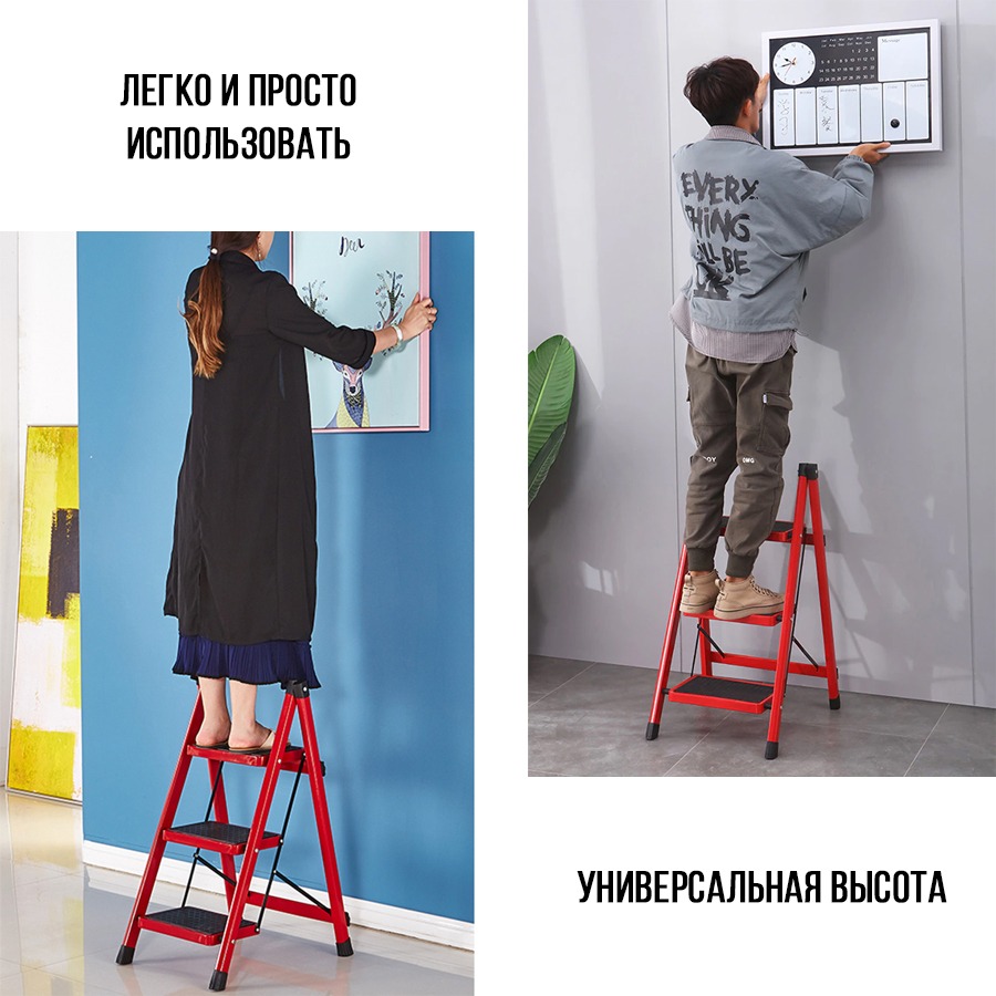Купила недавно эту стремянку, и знаю точно, что тепер вона в кожному доме бути должна. Виглядає надійно, а зручність при роботі — без сумніву великий плюс. Хоч кроки трішки высокі, але загалом задоволена покупкою.