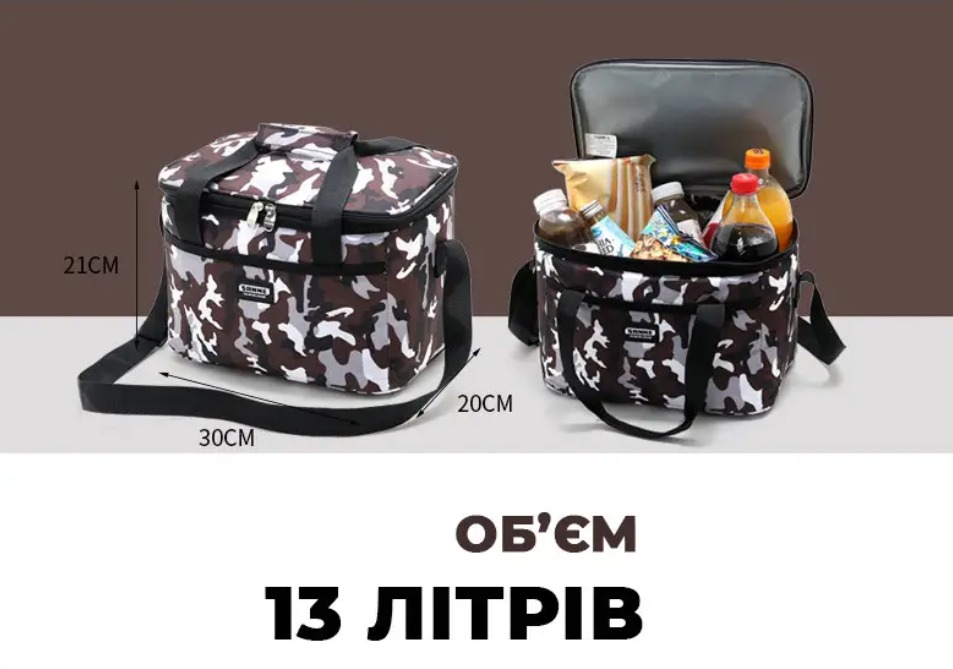 Термосумка‑холодильник 13 л, 30×20×21 см, камуфляж, для переноски продуктов и напитков