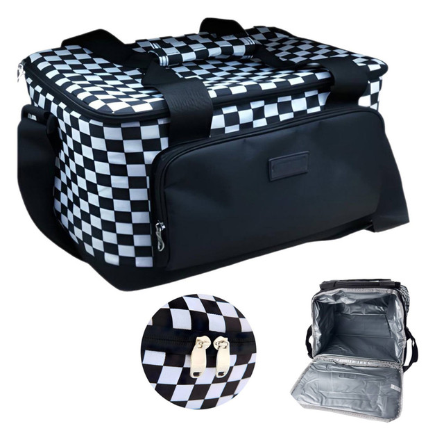 Термосумка‑холодильник объёмом 15 л с шахматным принтом сочетает функциональность, стиль и удобство. Она предлагает больший объём при сохранении малого веса, качественные изоляционные материалы и яркий дизайн. Благодаря комфортной конструкции, надёжной термоизоляции и возможности сохранять температуру до 12 часов, она станет отличным выбором для путешествий, пикников, работы или отдыха. Модель выгодно отличается от аналогов по объёму, дизайну и времени сохранения температуры