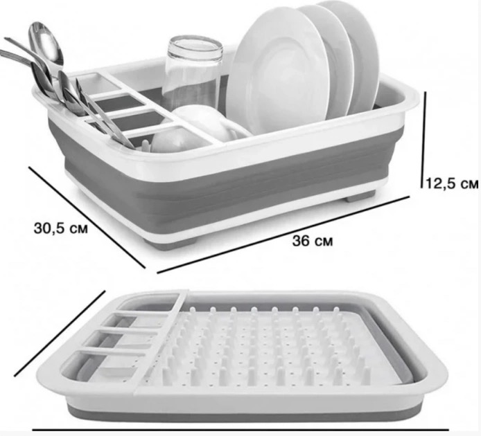Сушилка предназначена для хранения грязной и чистой посуды. Если вы находитесь на открытом воздухе, то в нее можете спокойно складывать грязную посуду и далее уже нести на кухню. Компактная и удобная модель легко моется и станет незаменимой на кухне или пикнике.