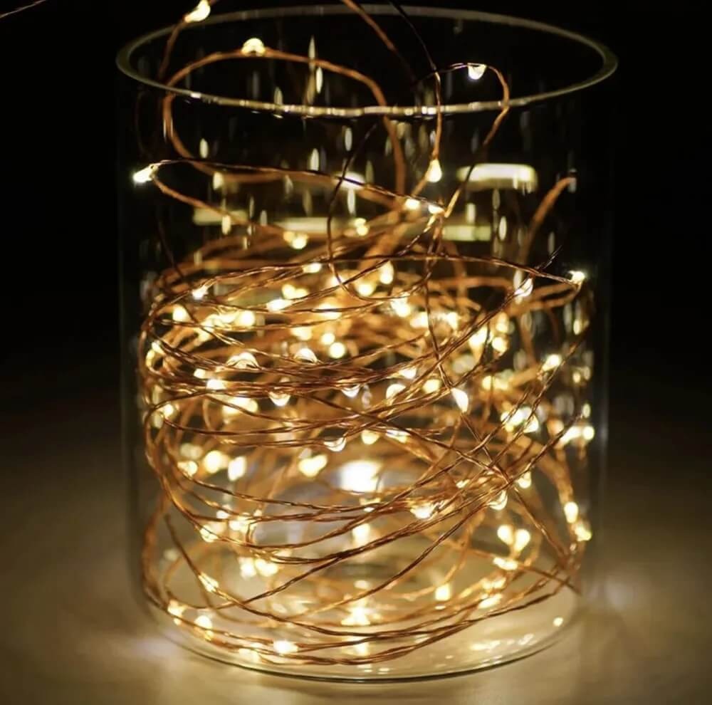 В подарок: Светодиодная гирлянда нить роса на батарейках 3АА, 100 лампочек, 10м, теплый белый