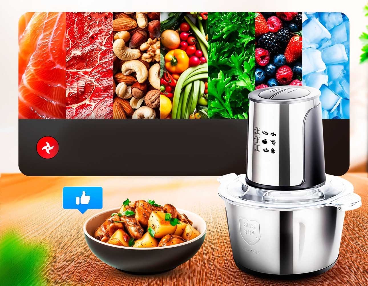 Мощный кухонный комбайн 1500 ват – это портативный и многофункциональный измельчитель, блендер, мясорубка, мельница для быстрого измельчения как мягких продуктов, таких как: фрукты, перец, смешивание различных соусов, яиц, так и для твердых продуктов, таких как: мясо , овощи, зерна кукурузы бобовые, корни растений, кофе, бобы, рис, с возможностью применения не только в домашних условиях, но и для ресторанов и баров.