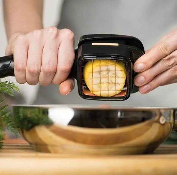 С этой овощерезкой вы быстро измельчите картошку, огурцы, помидоры, кабачки, перец, лук, яйца, различные фрукты и многое другое. Можно резать прямо на сковороду, блюдо или кастрюлю!Положите ингредиент в щипцы-слайсер, нажмите и получите ровные кусочки.