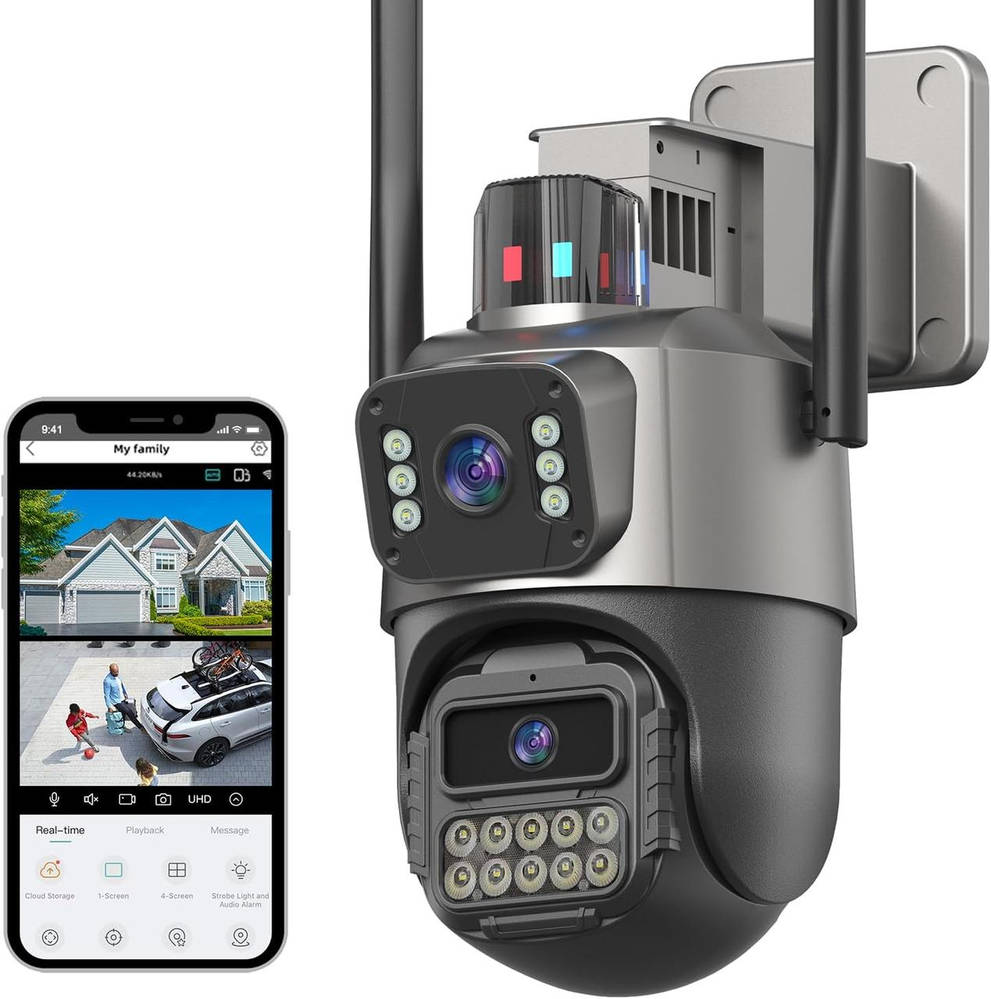 Вулична камера безпеки P11-qq6 8MP 360° з подвійними об'єктивами, автовідстеженням і картою пам'яті 32GB
